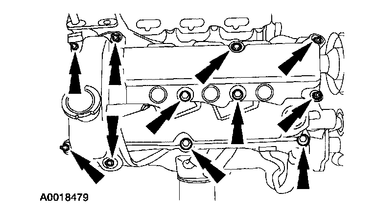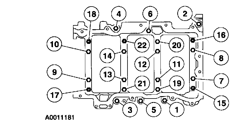 54. Loosen the bolts in the indicated sequence and remove the LH and RH cylinder heads.
