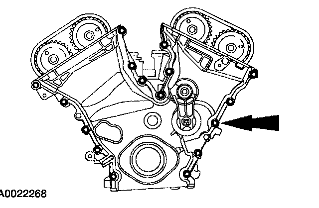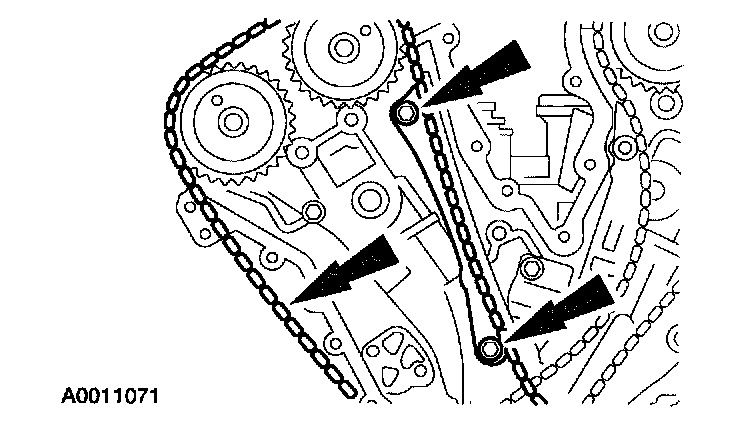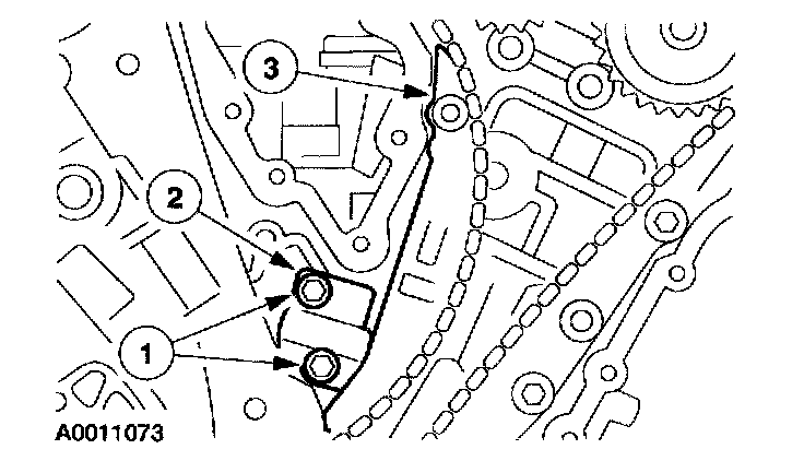 44. Remove the bolts, RH timing chain guide and the timing chain.