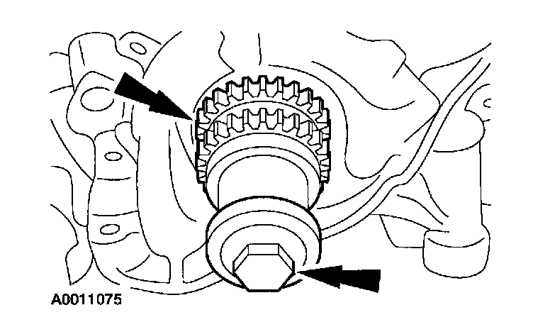 40. Rotate the crankshaft clockwise to position the crankshaft keyway in the 11 o'clock position and position the camshafts in the correct position. This will position the number one cylinder at top dead center (TDC).