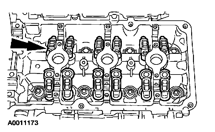 50. Loosen the LH and RH camshaft cap bolts in the indicated sequence and remove the camshaft caps.