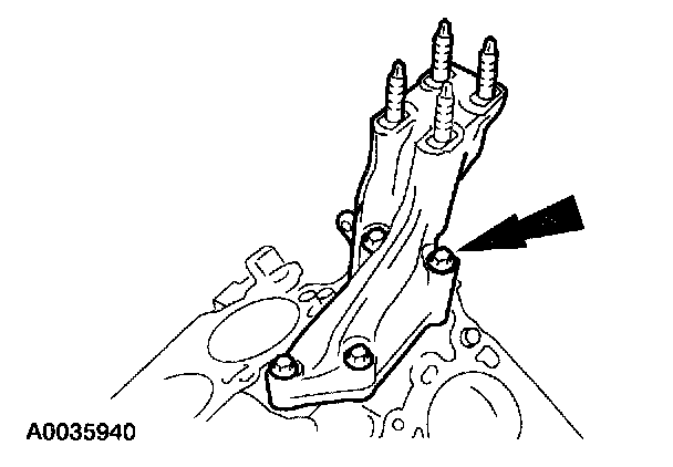 32. Remove the bolts, nut and the oil pick up tube and screen.