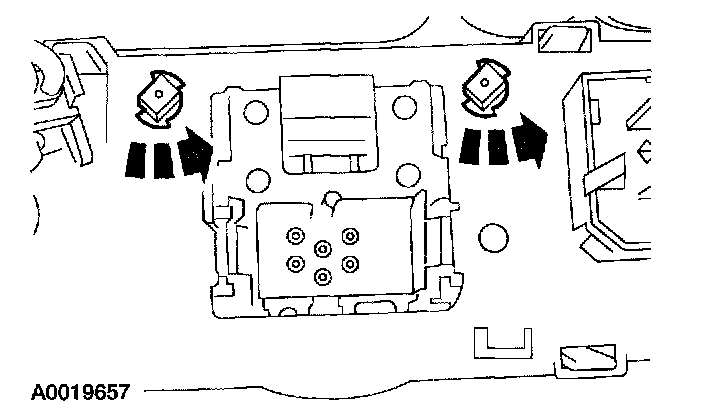 Removal and Installation1. Remove the instrument panel center finish panel. For additional information refer to INSTRUMENT CLUSTER FINISH PANEL.