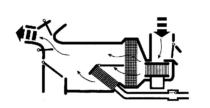 - The air inlet blend door is in the no vacuum position blocking recirculation air and allowing outside air.