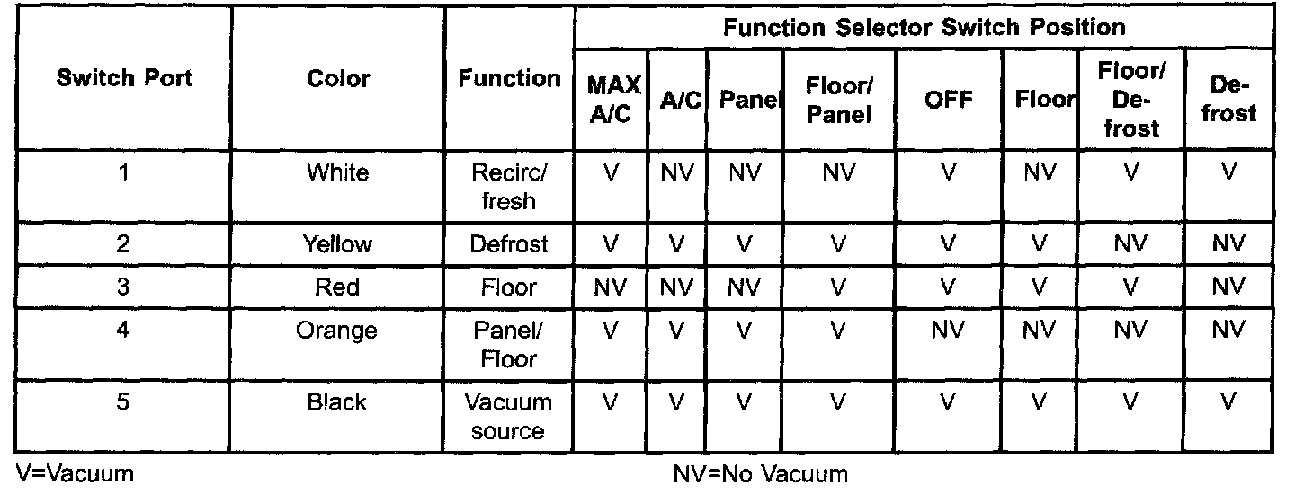 - The defrost blend door is at full vacuum while the footwell blend door is at no vacuum, closing both doors.