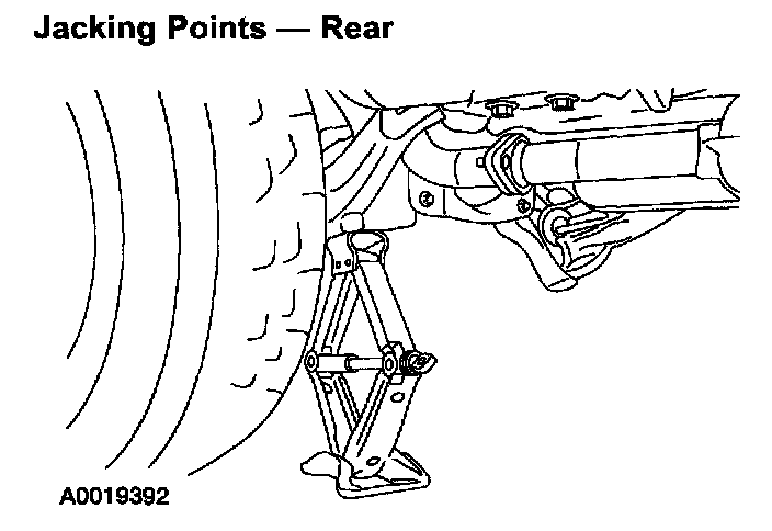 JACKINGWarning: Do not run the engine when jacking the vehicle. The wheels contacting the ground could cause the vehicle to move.