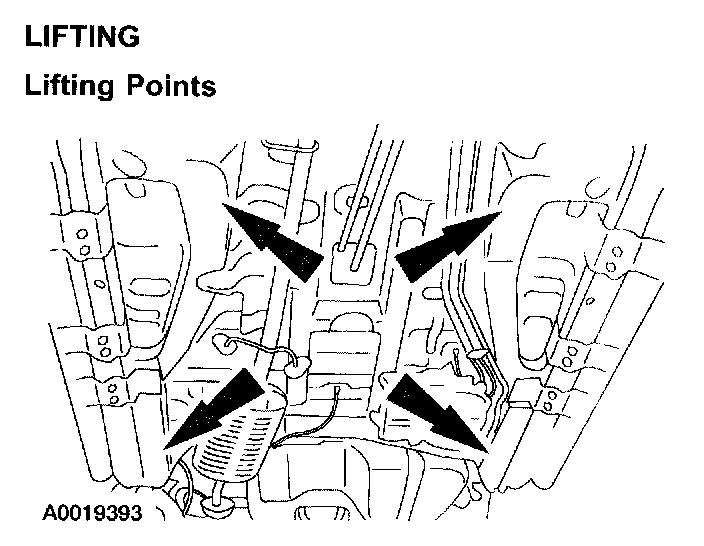Caution: Damage to the suspension, exhaust or steering linkage components may occur if care is not exercised when positioning the hoist adapters prior to lifting the vehicle.