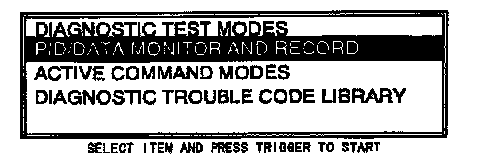 4. Move the cursor to PID/DATA MONITOR AND RECORD. Press trigger.