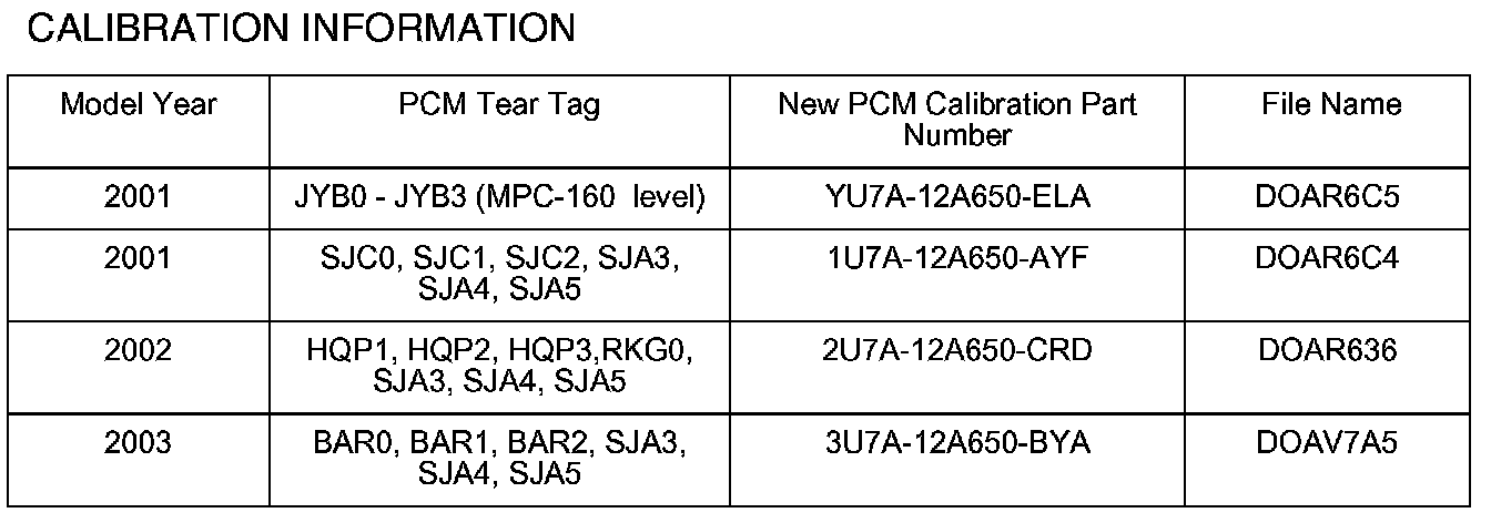 ^ Please be aware that PCM calibration part numbers and file names listed in any Service Bulletin may change due to future releases of WDS software, and additional revisions made to those calibrations for service related concerns.
