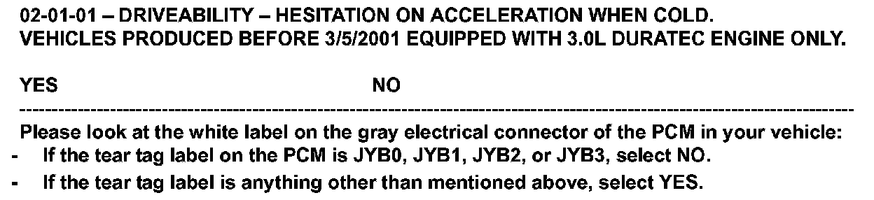 2. IMPORTANT: On certain 2001 Tribute vehicles, during the PCM reprogramming procedure with WDS, you will see a screen that asks: