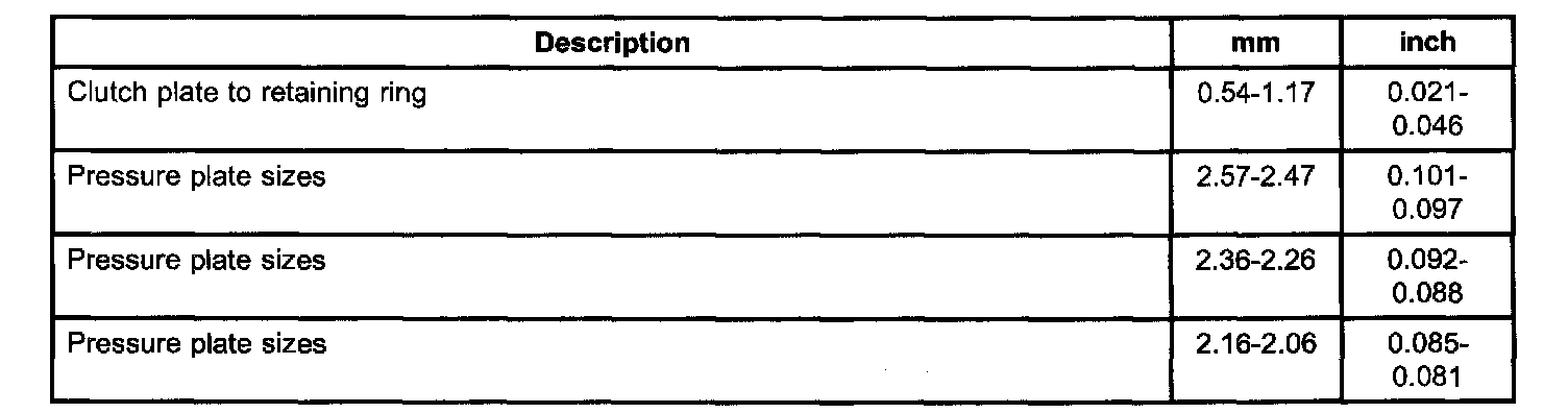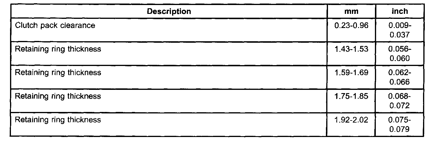 Direct Clutch Pack Clearance (4 Friction Plates)