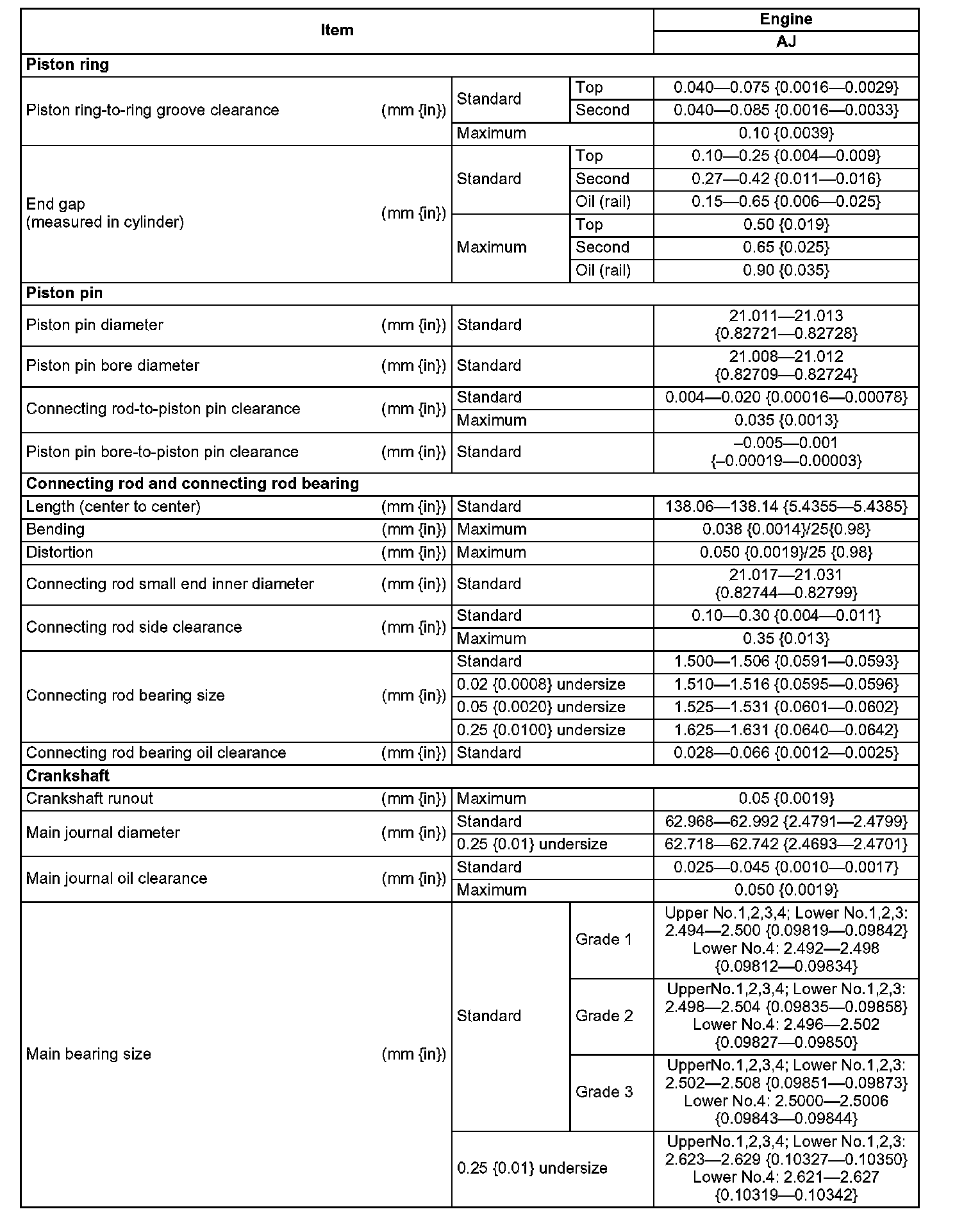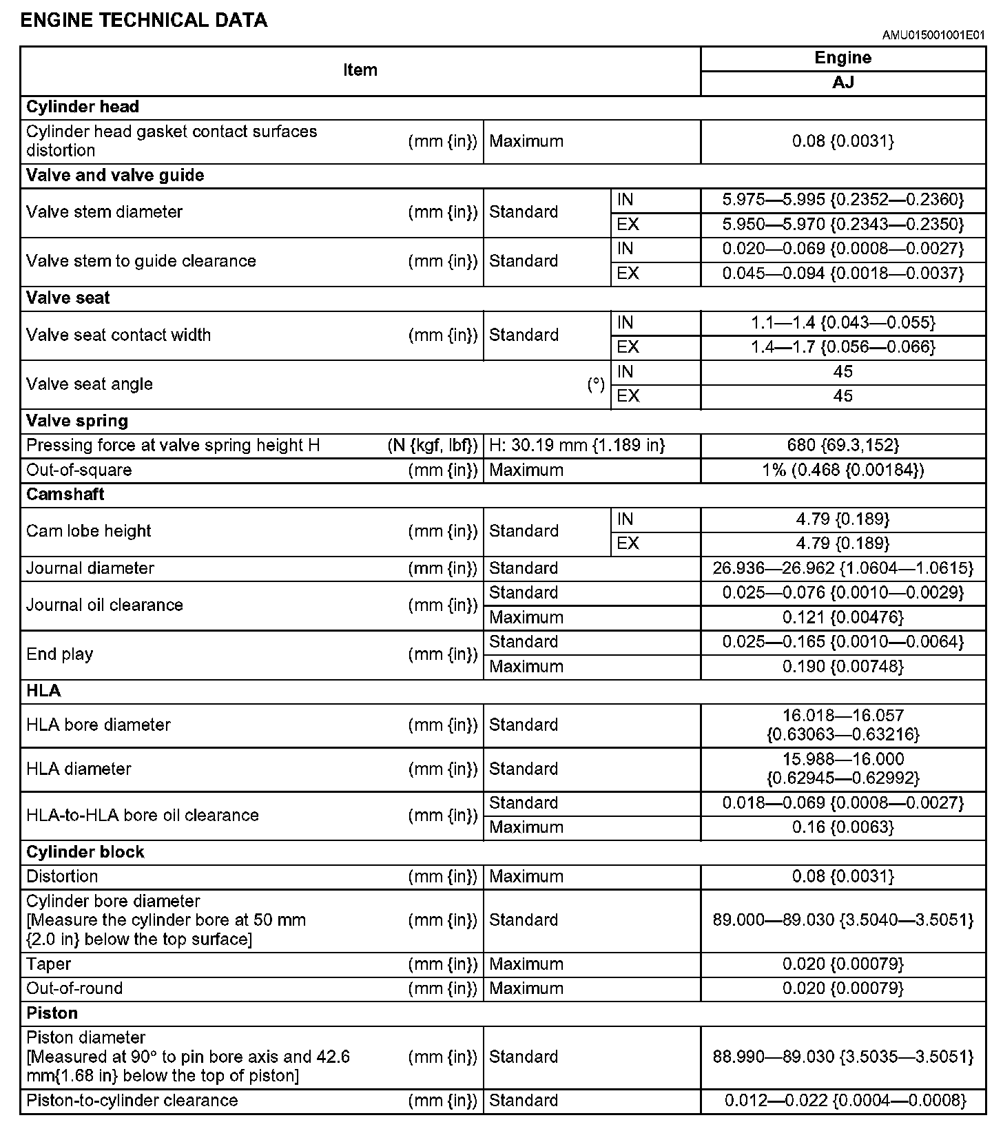 Technical Data AJ w/o VVT