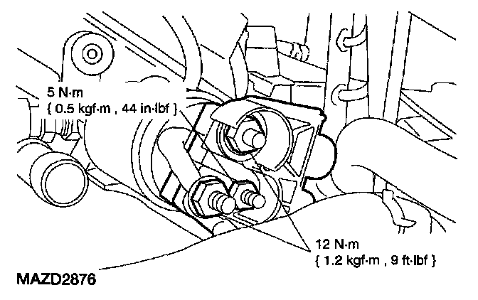 6. Remove the two bolts and the starter motor.