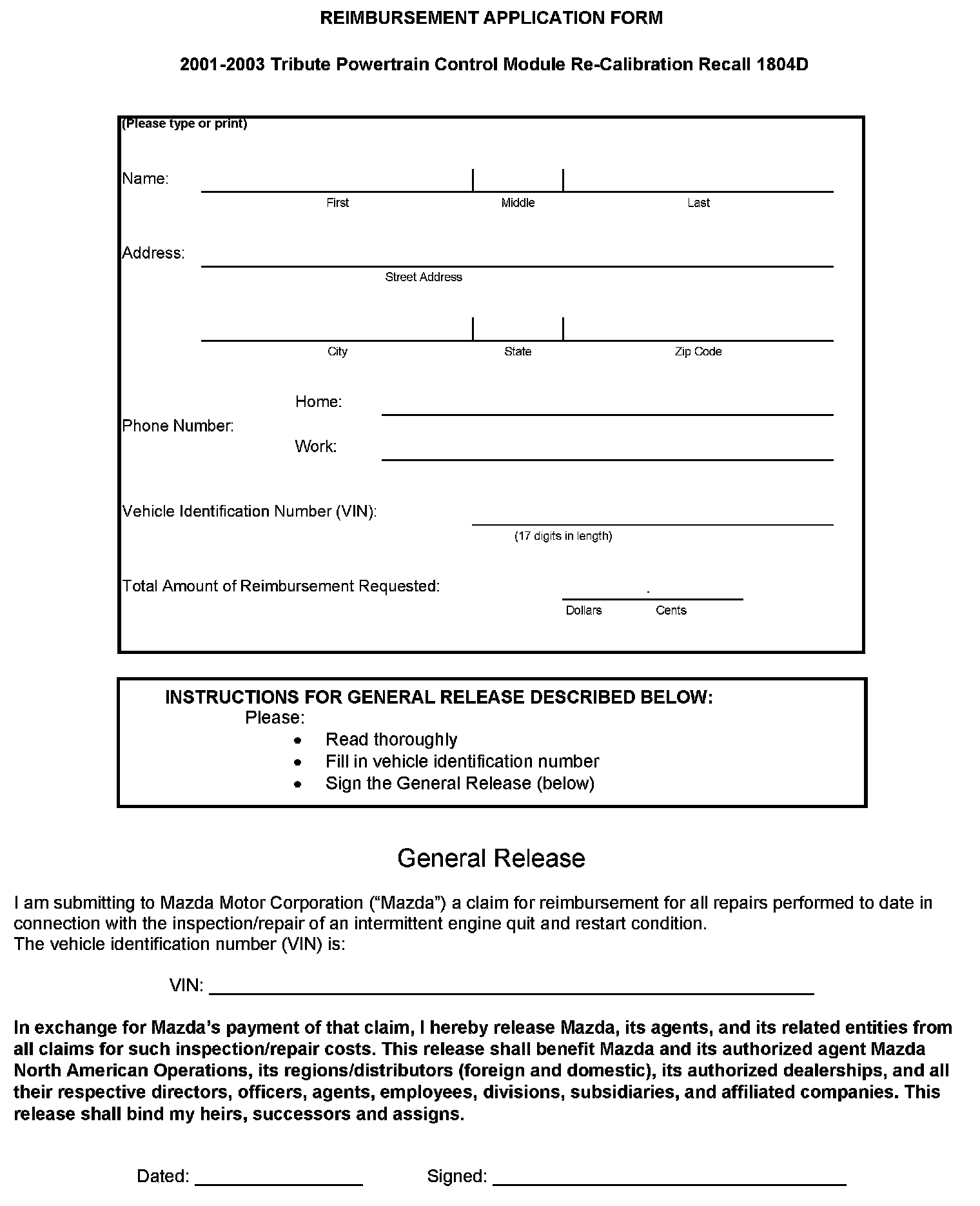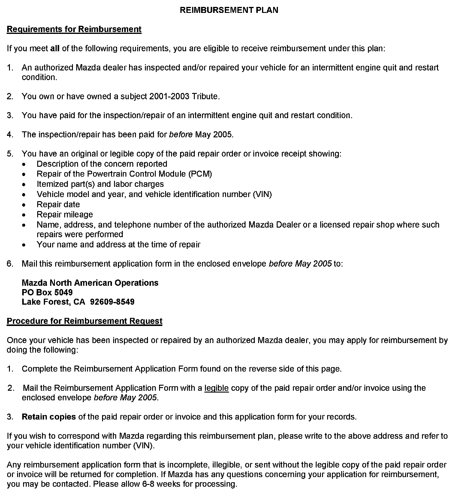 Reimbursement Plan/Application Form