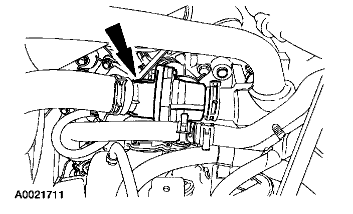 ^ It may be necessary to remove the thermostat housing to gain access to the transaxle range (TR) sensor.