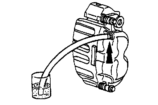 3. Loosen the disc brake caliper bleeder screw until a stream of brake fluid comes out. While the assistant maintains pressure on the brake pedal, tighten the disc brake caliper bleeder screw.