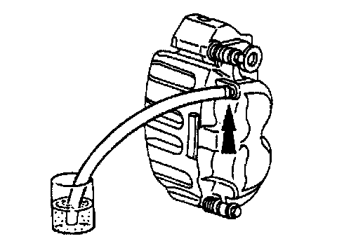 1. Place a box end wrench on the disc brake caliper bleeder screw. Attach a rubber drain tube to the disc brake caliper bleeder screw, and submerge the free end of the tube in a container partially filled with clean brake fluid.