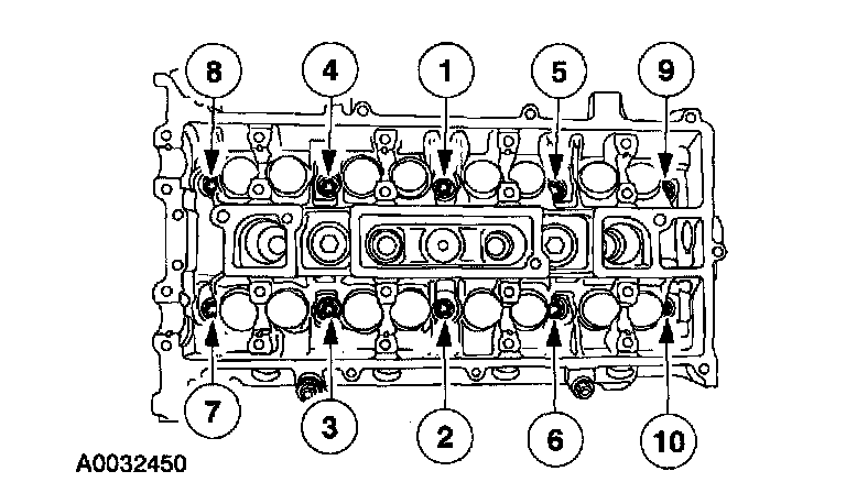 12. Install the cylinder head. Tighten the bolts in the sequence shown in five stages.