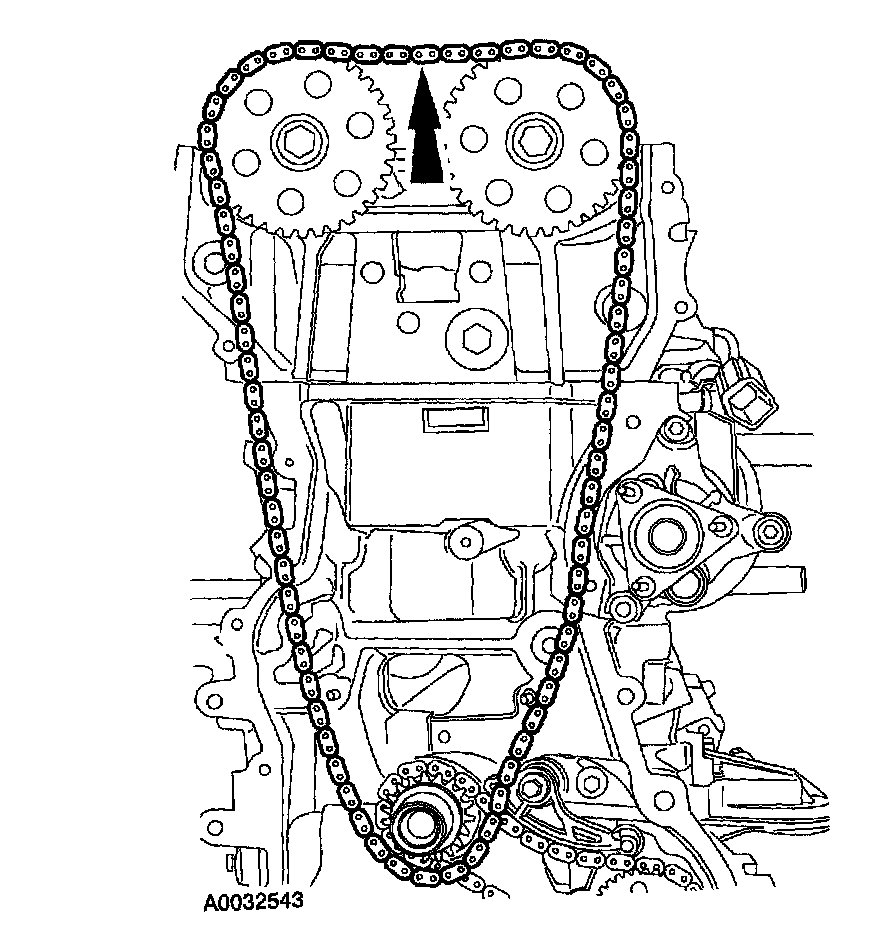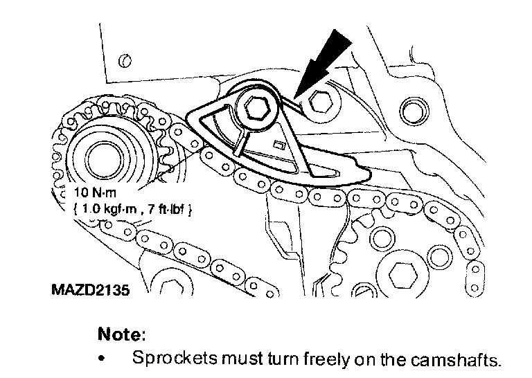^ Sprockets must turn freely on the camshafts.