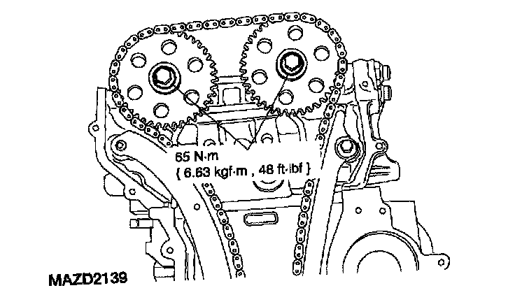 27. Tighten the camshaft sprocket bolts.