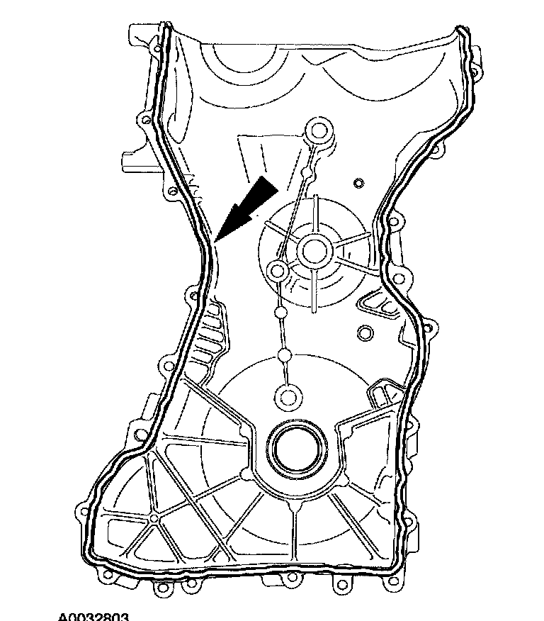 29. Apply a 2.5 mm bead of silicone gasket and sealant to the front cover.