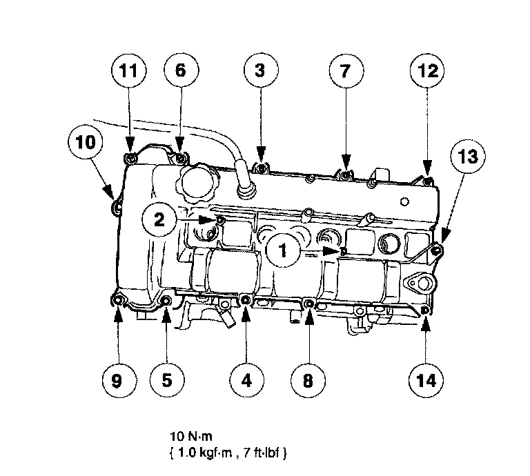 51. Install the valve cover and tighten the bolts in the sequence shown.