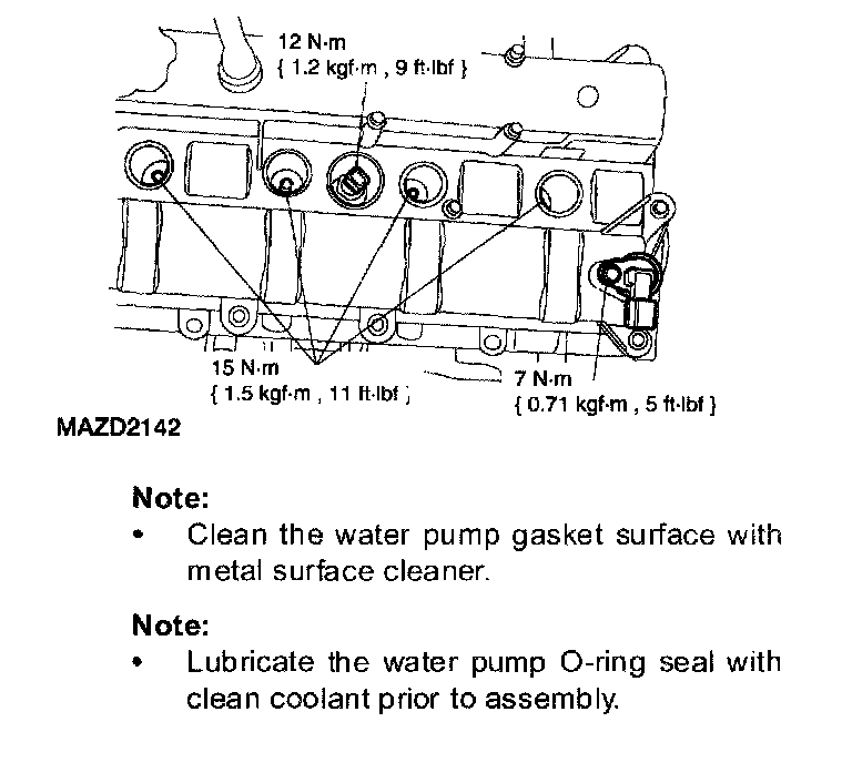 ^ Lubricate the water pump O-ring seal with clean coolant prior to assembly.
