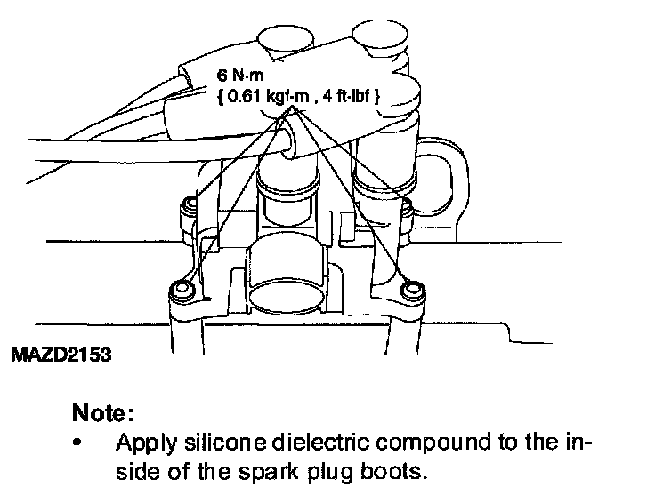 ^ Apply silicone dielectric compound to the inside of the spark plug boots.