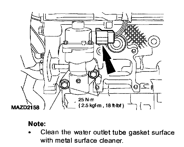 ^ Clean the water outlet tube gasket surface with metal surface cleaner.