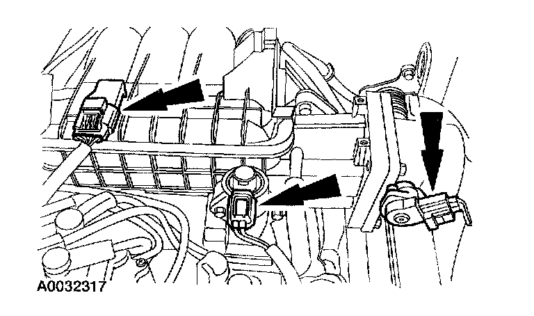 21. Disconnect the Camshaft Position (CMP) sensor electrical connector and disconnect the PCV hose from the intake manifold.
