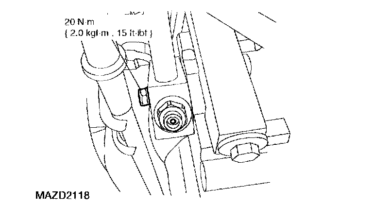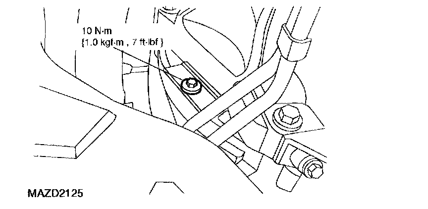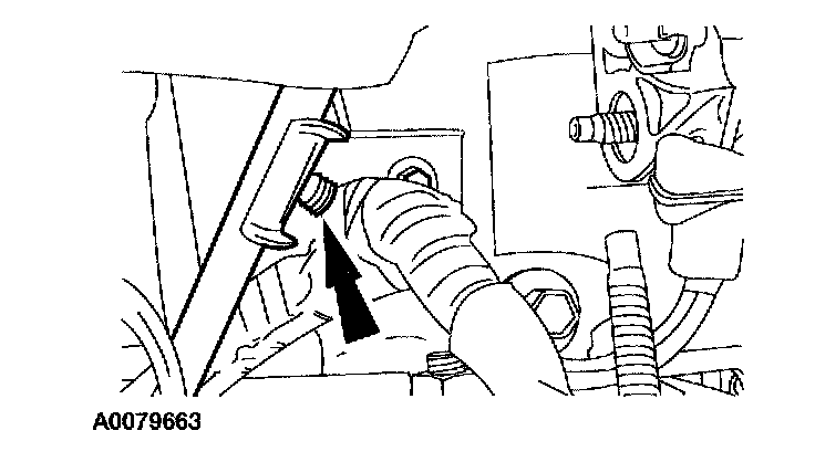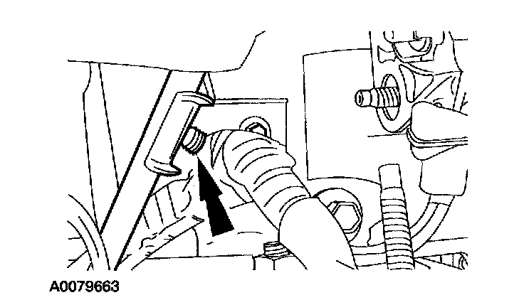 34. If the vehicle is equipped with an automatic transmission, remove the bolt retaining the transmission cooling tubes to the engine and remove the bracket.