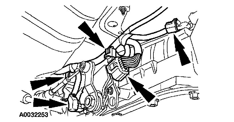 ^ Disconnect the vehicle speed sensor, transmission range sensor, backup light switch and the transmission electrical connectors.