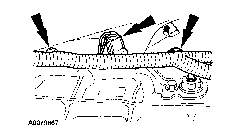^ Disconnect the pushpins and position the harness forward to the engine.