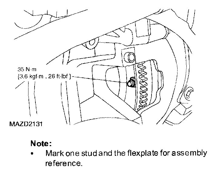 ^ Mark one stud and the flexplate for assembly reference.