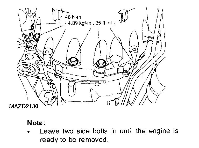 ^ Leave two side bolts in until the engine is ready to be removed.