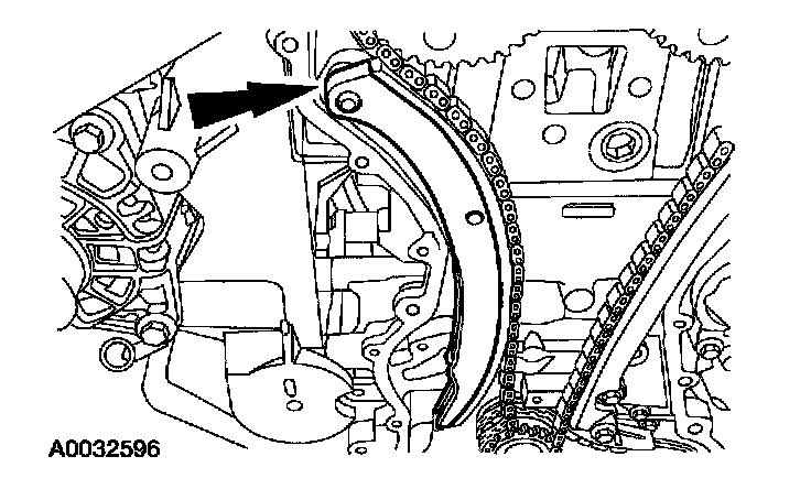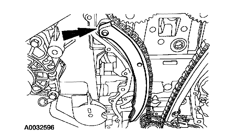1. Compress the timing chain tensioner, and insert a paper clip into the hole.