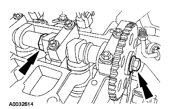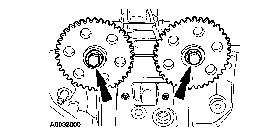 3. If removed, install the camshaft sprockets and the bolts. Do not tighten the bolts at this time.
