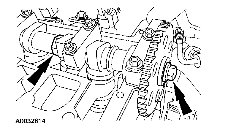2. If the camshaft sprockets were not removed, use the flats on the camshafts to prevent camshaft rotation and loosen the sprocket bolts.