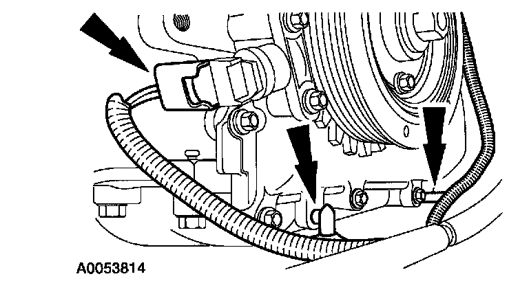 3. Disconnect the Crankshaft Position (CKP) sensor electrical connector and the wiring harness pin-type retainers.