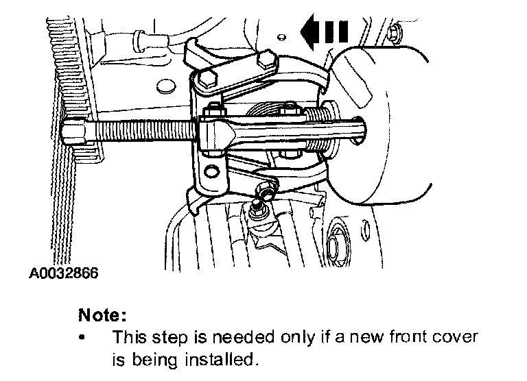 9. Using a three-jaw puller, remove the fan drive pulley.