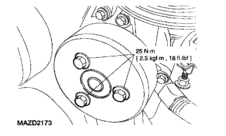 ^ Tighten the 10 mm bolts to 25 Nm (2.5 kgf-cm, 18 lbs.).