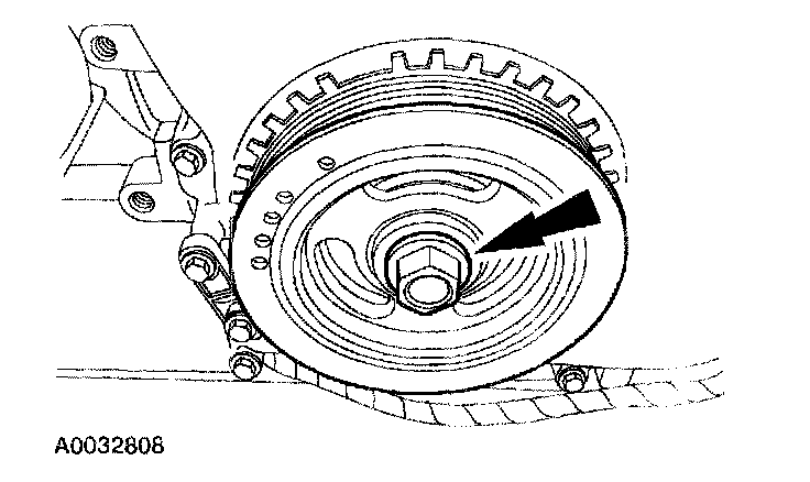 ^ The crankshaft, the crankshaft sprocket and the pulley are fitted together by friction, with diamond washers between the flange faces on each part. For that reason, the crankshaft sprocket is also unfastened if you loosen the pulley. Therefore, the engine must be retimed each time the damper is removed. Otherwise severe engine damage can occur.