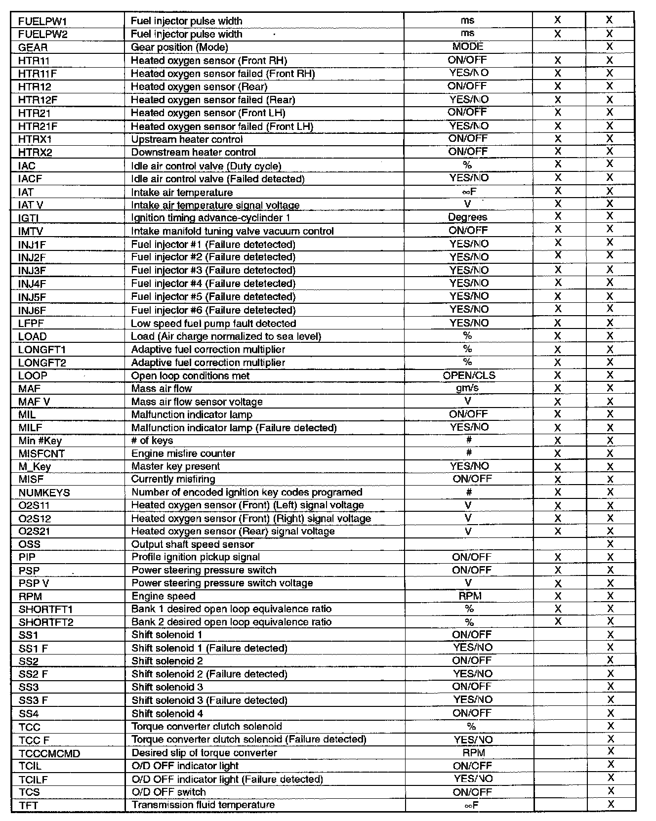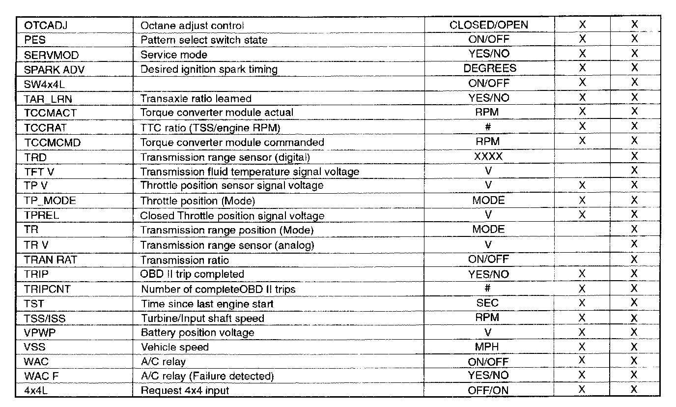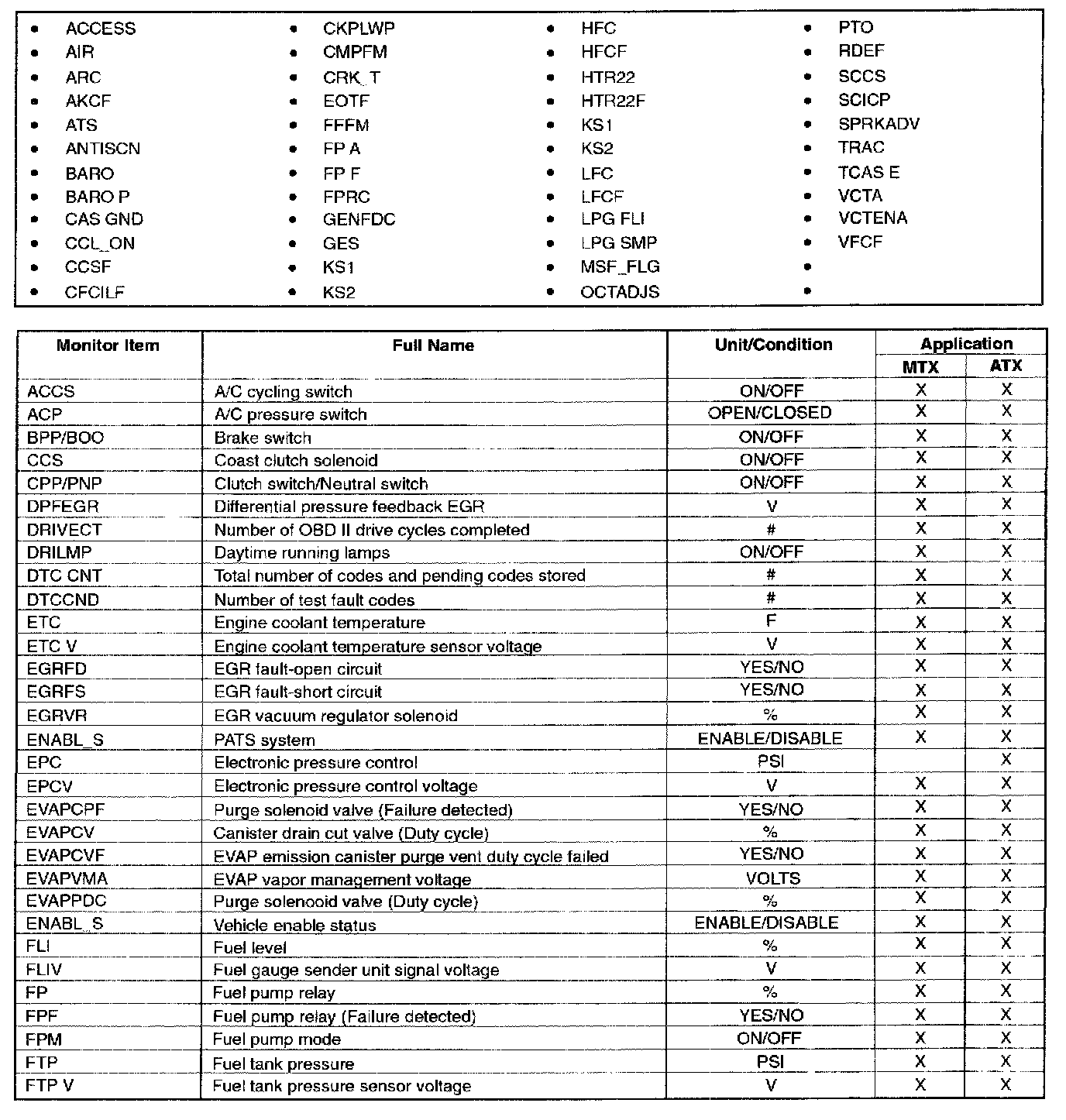 PID/Data Monitor Item Table Part 2: