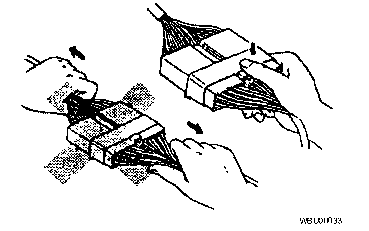 - When disconnecting two connectors, grasp the connectors, not the wires.