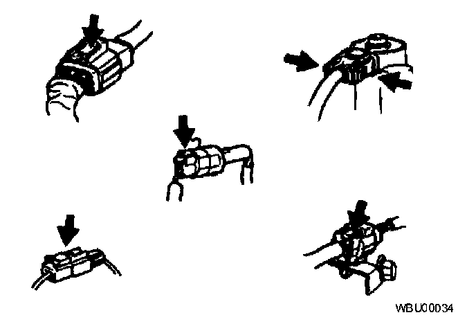 - Connectors can be disconnected by pressing or pulling the lock lever as shown.