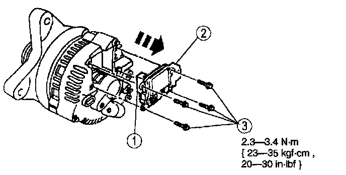 4. Install the brush and terminal holder on the voltage regulator.