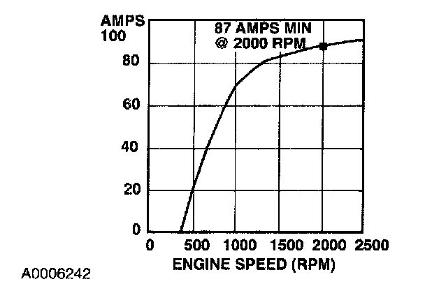 6. With the engine running at 2,000 rpm, adjust the tester load bank to determine the output of the generator. Generator output should be at least 58 amps.