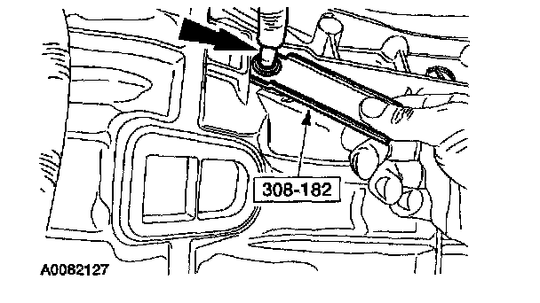 ^ Lower the transmission enough to gain access to the transmission to engine bolts. USE a long extension to remove the bolts.