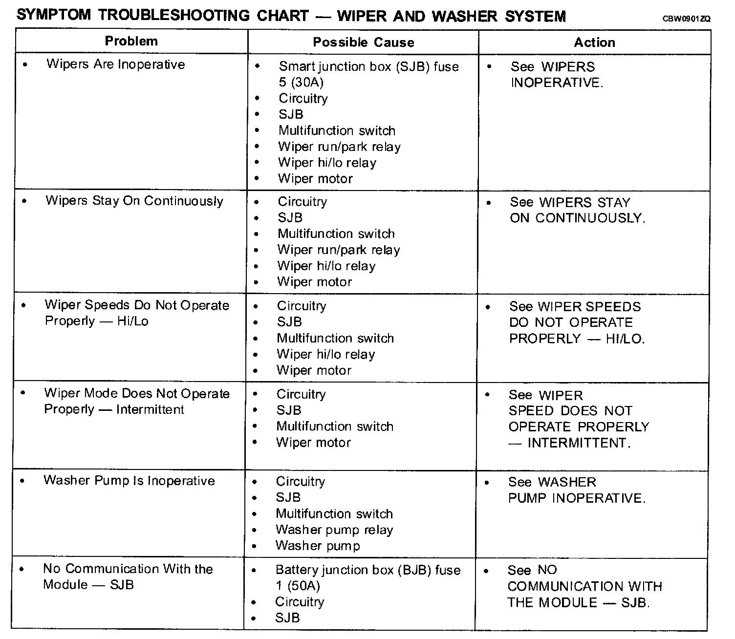 Symptom Troubleshooting Chart - Wiper And Washer System: