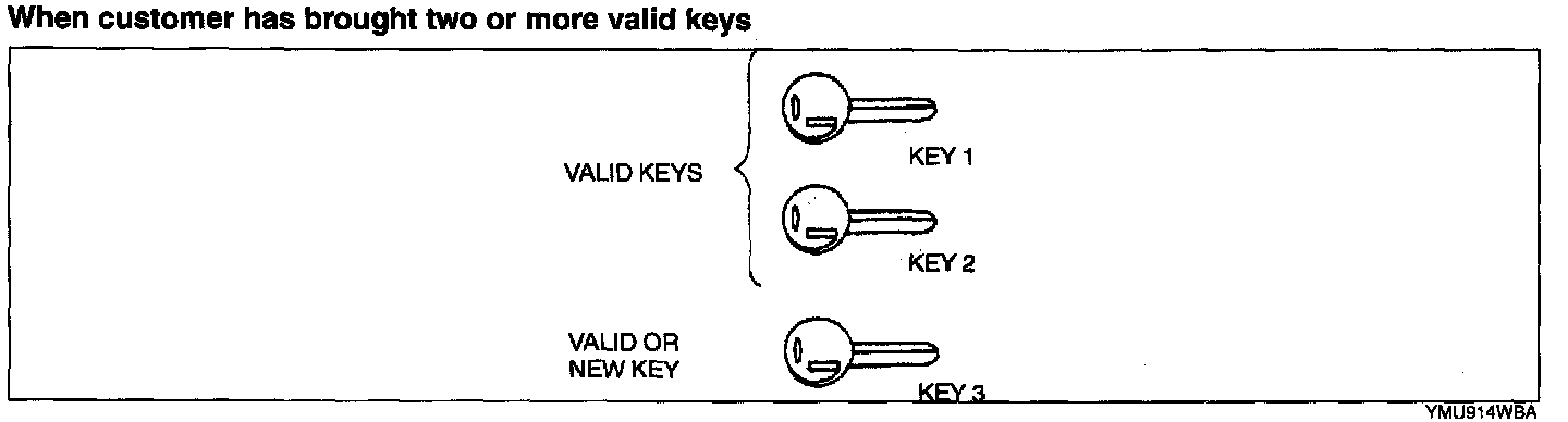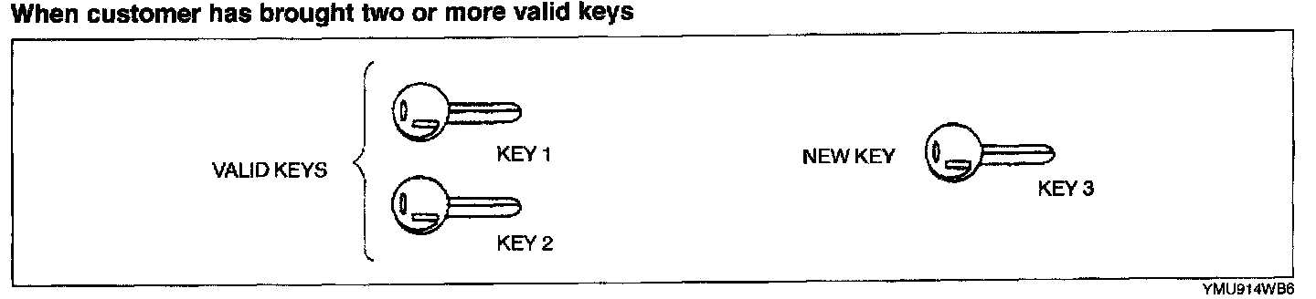 - Confirm that all keys registered can start the engine after the reprogram procedure. When confirming, wait for more than 5 seconds before inserting the next key.