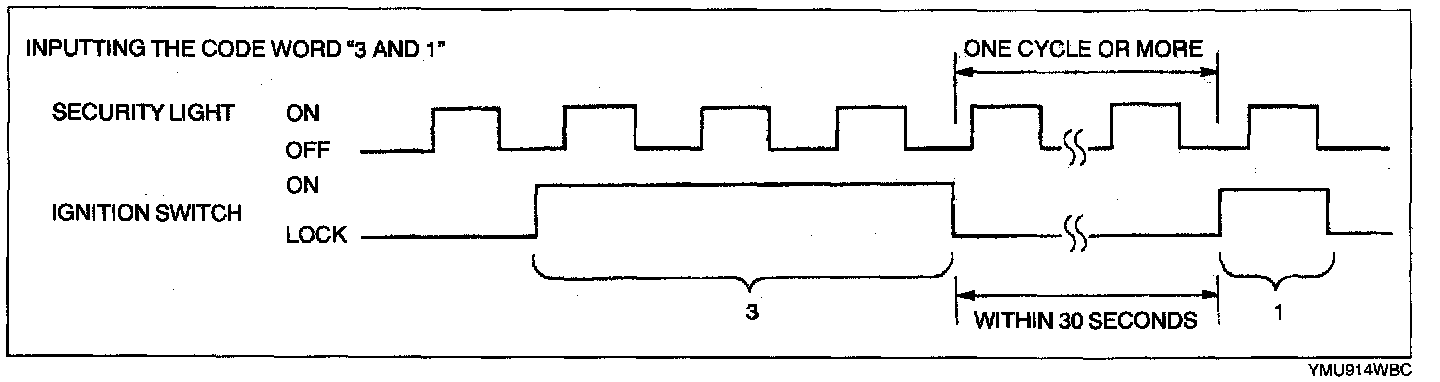 NOTE: If the code word is not input correctly, the security light goes out after all eight digits are input. In this case, perform the "Code Word Input Error Recovery Procedure."